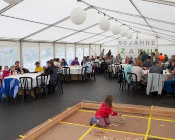 Am darauffolgenden Tag hat die ZAKU die Bevölkerung zur Besichtigung ihrer Anlagen eingeladen. Eine von Christof Hirtler gestaltete Ausstellung blickte auf die 50-jährige Geschichte zurück und zeigte, was aus Abfällen wieder produziert werden kann. Kinderspiele und eine Festwirtschaft liessen die Besucherinnen und Besucher verweilen und ermöglichten Gespräche und Kontakte.
